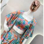 Sunny Leone Western Style Dress With Blouse Bottom and Shrug With Print