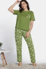 Zivame Nature Trails Knit Cotton Pyjama Set Turtle Green